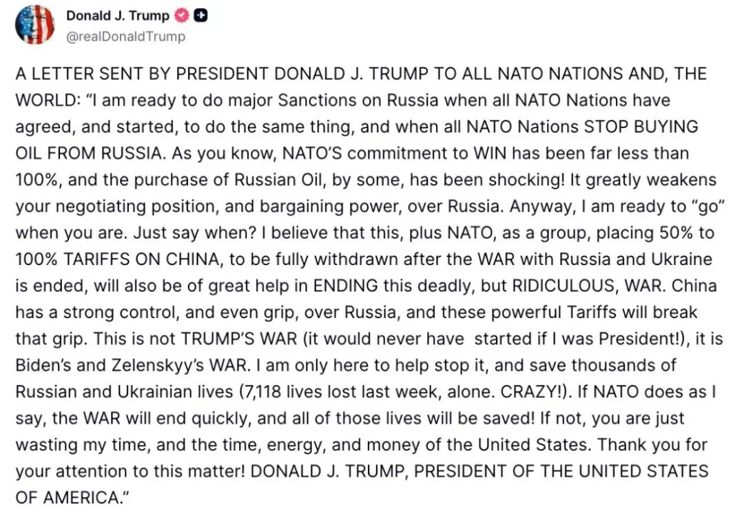 【国际资讯】50%-100%关税施压!特朗普要求北约集体对中国加征关税