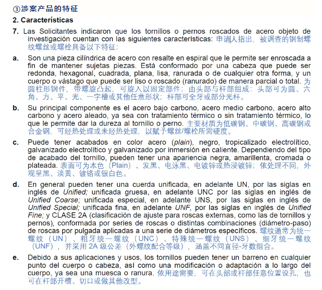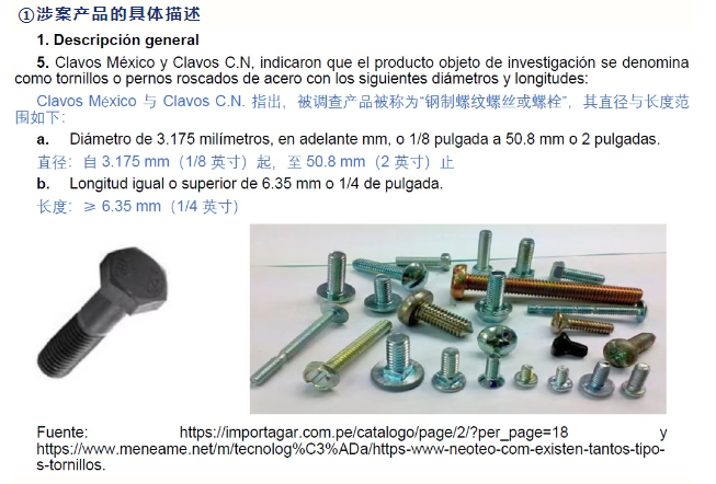 一、案件核心信息:精准界定涉案范围,把握调查关键周期 1. 涉案产品明确:尺寸规格是核心判定依据 根据墨西哥经济部公告,本次涉案钢制螺栓具体范围为直径 3.175 mm(1/8 英寸)至 50.8 mm(2 英寸)、长度 6.35 mm(1/4 英寸)及以上且带有螺纹的产品。值得注意的是,尽管公告提及上述海关编码,但行业企业需明确 —— 判断产品是否涉案,最终应以调查机关发布的《立案公告》原文描述为准,海关编码及中文翻译仅作参考,不能作为唯一判定标准。 对于申请方提出的涉案产品详细特征、非涉案产品类型等信息,中国机电产品进出口商会已整理《立案公告》供企业查阅(含相关图示参考),企业可通过商协会渠道获取原文,精准核对自身产品是否在调查范围内。