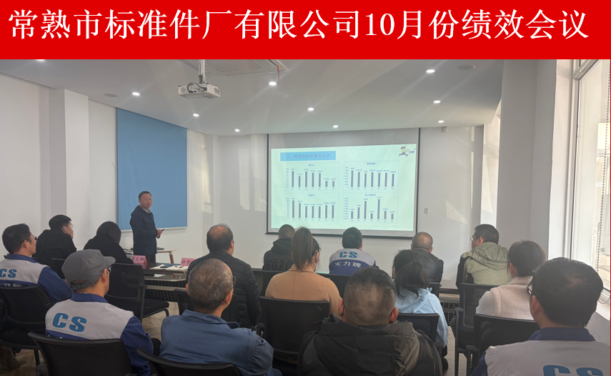 11月19日下午,常熟市标准件厂有限公司召开10月份绩效管理会。本次会议由公司副董事长许守进主持,董事长蒋永峰、常务副总经理顾锦华、副总经理聂文娜等24名中高层管理出席本次会议。