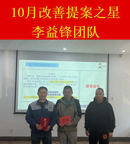 本次会议公布了10月份公司绩效完成情况、副总级&经理级&主管级人员的绩效得分、10月份绩效改善提案情况。经评定,李益锋团队评为“10月改善提案之星”。