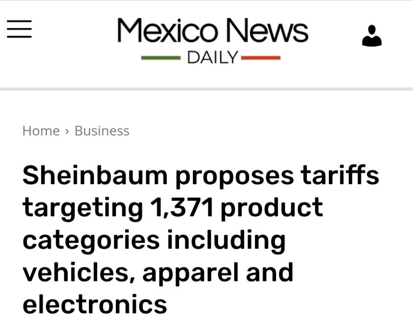 近日,墨西哥参议院表决通过总统克劳迪娅·辛鲍姆提出的2026年预算议案,明确对中国、韩国、印度等未签订自贸协定国家的1371种商品加征进口税,最高税率达50%。