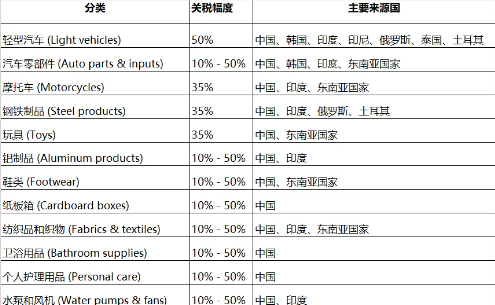 汽车行业涉及154个税号,针对汽车零部件及轻型车辆,助力本土供应链建设;